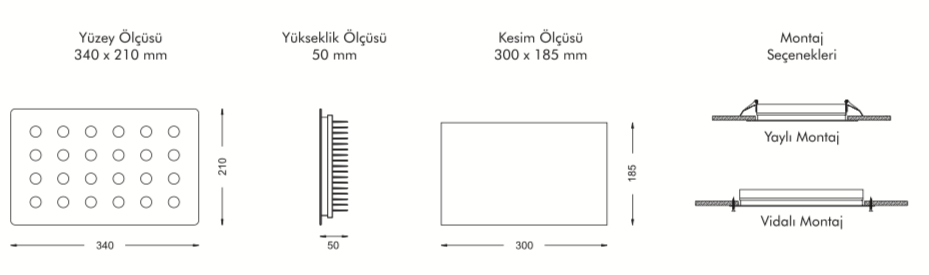 • Montaj Kesim Ölçüsü : 300 mm x 185 mm